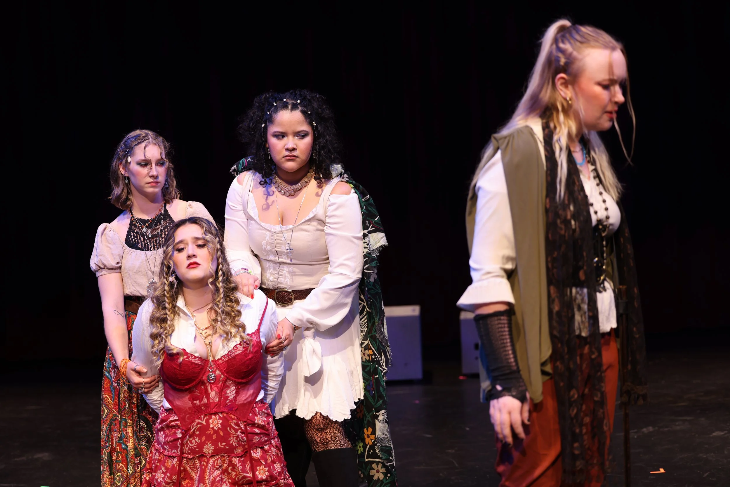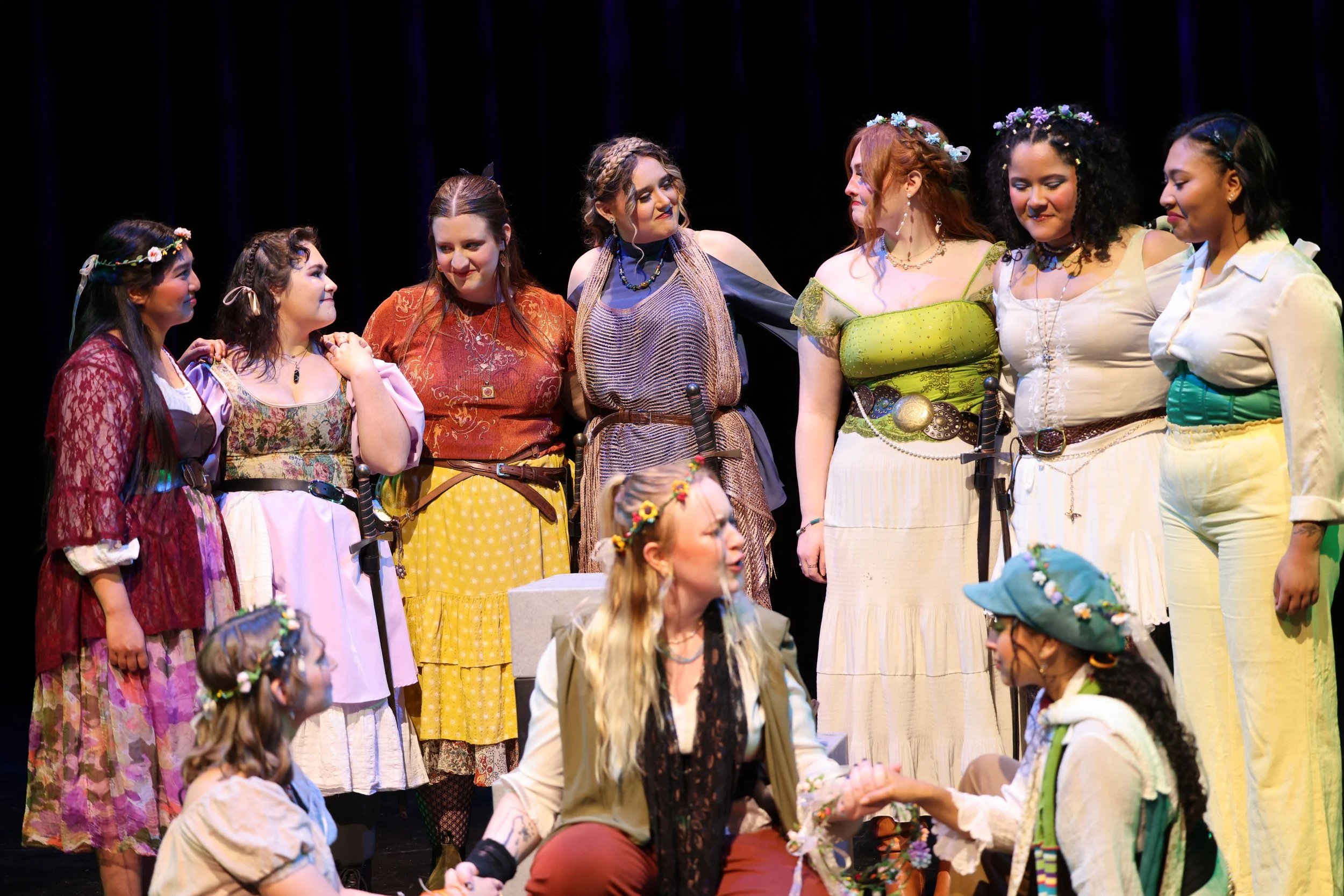 HENRY V WAS MY FIRST SHAKESPEARE SHOW AND IT SURPRISED ME HOW MUCH I CAME TO LOVE SHAKESPEARE. I HAVE ALWAYS STRUGGLED WITH READING, SO PERFORMING SHAKESPEARE WAS DAUNTING AT FIRST, BUT OUR DIRECTOR, EVA ST. CLAIR, WAS ABSOLUTELY INCREDIBLE AT WORKING WITH OUR CAST TO TELL THIS STORY. IN OUR COLLEGE MANY OF US WOMEN FELT THAT THERE WERE FAR MORE ROLES FOR MEN IN OUR SEASON THAN THEIR WERE WOMEN, BUT THERE WERE FAR MORE WOMEN IN OUR PROGRAM SO IT REALLY DID NOT FEEL LIKE WE HAD A FAIR OPPORTUNITY TO PERFORM. EVA ST. CLAIR, A STUDENT AND MY ALPHA PSI OMEGA BIG, BOLDLY DECIDED RATHER THAN COMPLAIN ABOUT IT WE SHOULD PUT ON OUR OWN FEMALE HEAVY SHOW. SINCE SHAKESPEARE IS PUBLIC DOMAIN, WE FULLY GENDER SWAPPED HENRY V AND IT WAS SUCH A LOVELY REHEARSAL SPACE TO BE IN. WE GOT TO COSTUME OURSELVES, LEARN A LOT OF STAGE COMBAT, AND GIGGLE AT THE TWO MEN IN OUR SHOW THAT PLAYED PRINCESS KATHERINE AND ALICE. I PLAYED LORD SCROOP OF MASHAM AND CAPTAIN GOWER AND I LOVED THEM BOTH. I KNOW THAT EVA ST. CLAIR WILL BE AN INCREDIBLE DIRECTOR IN THE FUTURE.